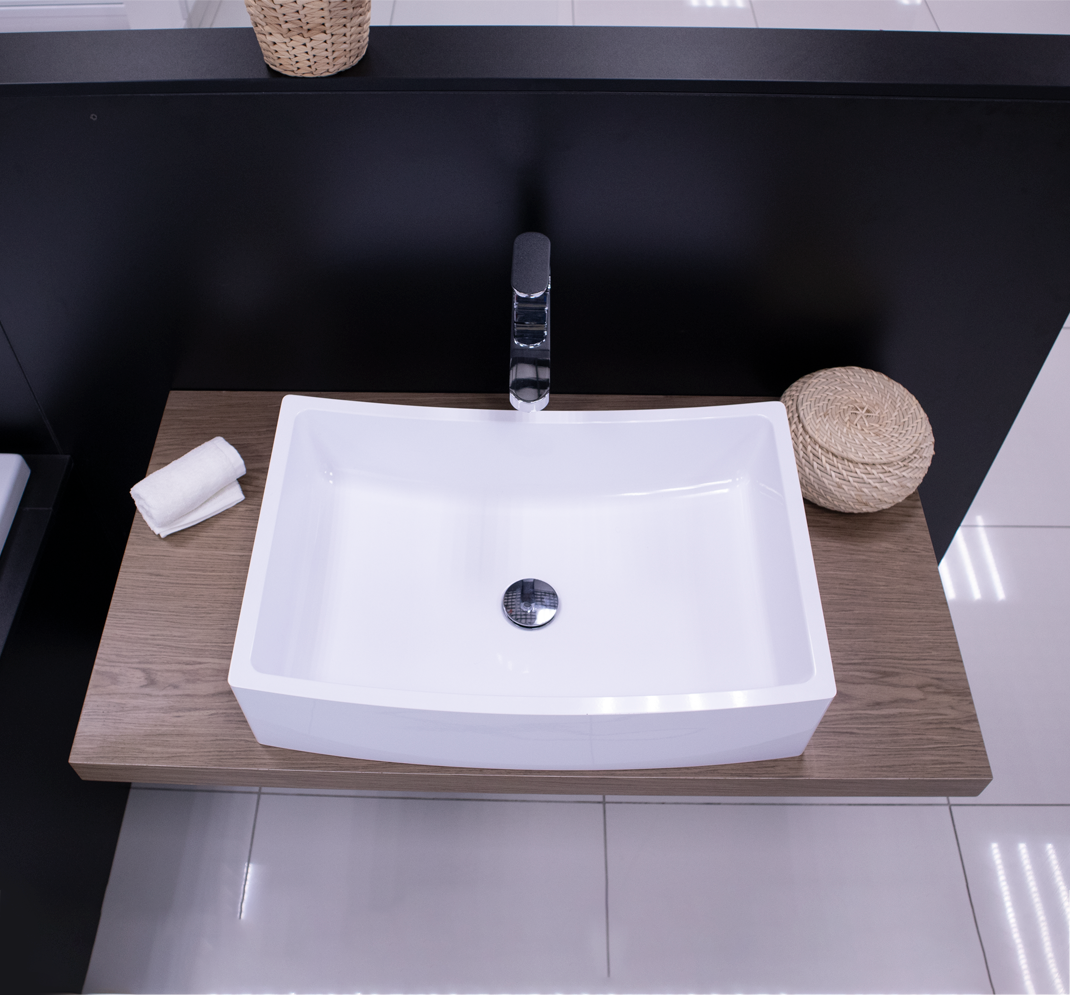 Исключительная по форме столешница, прежде всего, предназначена под умывальники Formy. Имеет специальную пропитку длямаксимальной устойчивости к влажной среде, представленав трех цветах и трех материалах. Столешница предоставляет много свободного места для вещей.