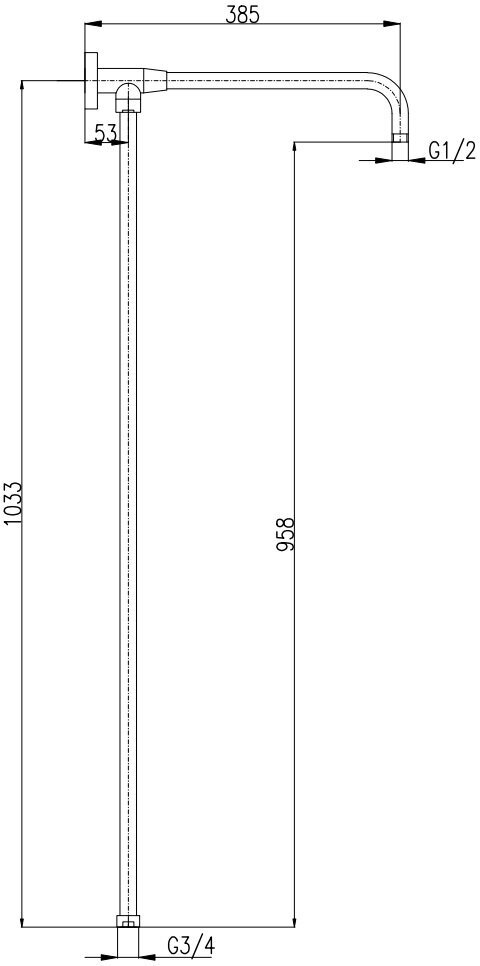 Душевая штанга Rav Slezak MD0631 из металла для верхнего и ручного душей. Подвод воды G3/4, подключение верхнего душа G1/2. Высота штанги 1088 мм, длина кронштейна для верхнего душа 385 мм. В комплекте штанга и комплект крепления.