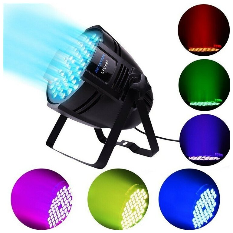 Светодиоды: 54 х 3Вт 3-в-1 (RGB).