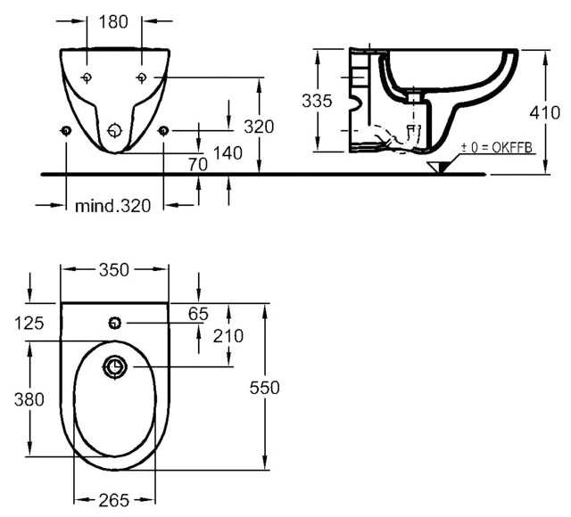 Биде Geberit (Keramag) Renova Nr.1 233040000. Монтаж подвесной. С переливом. С отверстием для смесителя. Число отверстий под смеситель 1. Расположение отверстия для смесителя - по центру. Горизонтальный выпуск. Вес 15,6 кг. Цвет белый. Ширина 35 см. Глубина 55 см. Высота 41. Материал керамический фаянс.