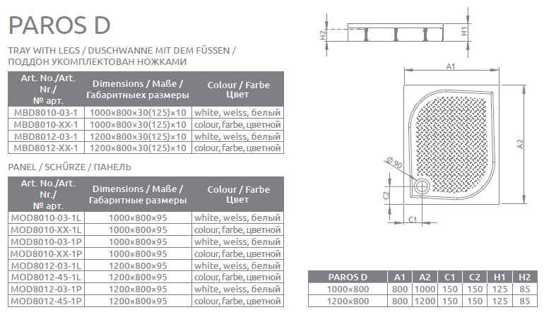 | ВКоробке | Поддон - 1 шт. Комплект ножек - 1 шт. Инструкция - 1 шт. |