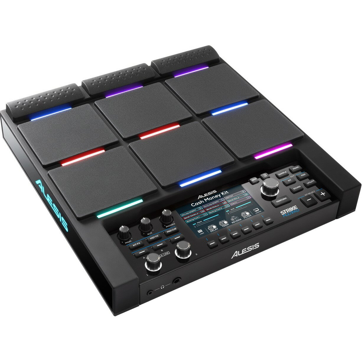 Компания Alesis создавала Strike Multipad, опираясь на необходимость барабанщика иметь возможность для создания сэмплов и лупов, редактирования и безупречной игры. С этой целью Strike MultiPad предлагает больше 7 000 встроенных звуков, 32 ГБ памяти и возможность записывать сэмплы из любых источников (смартфон, микрофон, интернет, USB, практически любое другое аудиоустройство). Девять чувствительных к скорости нажатия пэдов с настраиваемой RGB подсветкой легко конфигурируются для максимального удобства воспроизведения. Центральную часть Strike MultiPad занимает эксклюзивный цветной экран от Alesis с диагональю 4,3”. С его помощью можно проверять состояние системы или редактировать звуки. Такого рода общая огневая мощь ударных просто недоступна где-либо еще, даже в комплексных решениях.