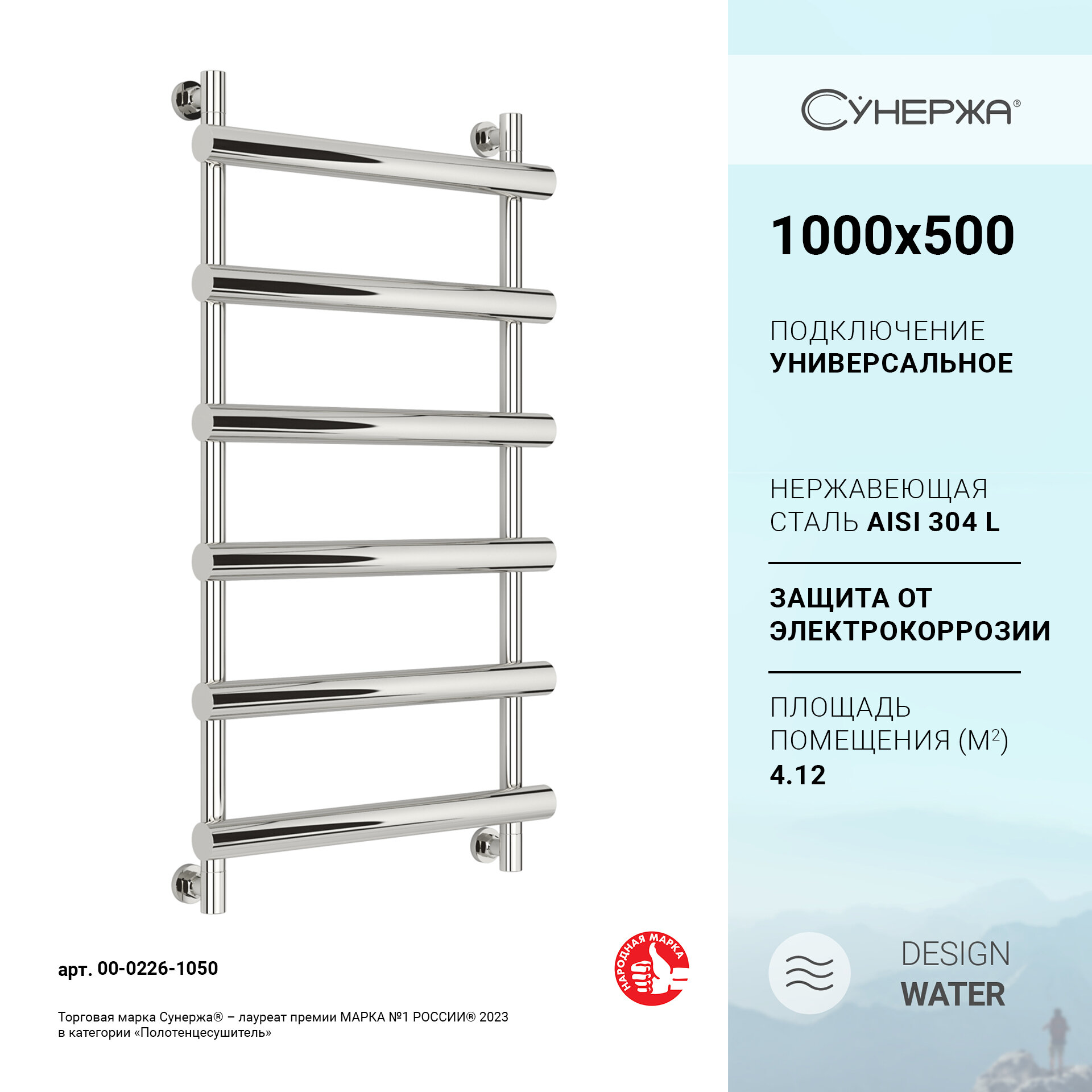 Водяной полотенцесушитель Сунержа Атлант 1000x500 00-0226-1050, цвет хром - органично впишется в современный интерьер и порадует Вас великолепным современным дизайном и продуманной функциональностью.