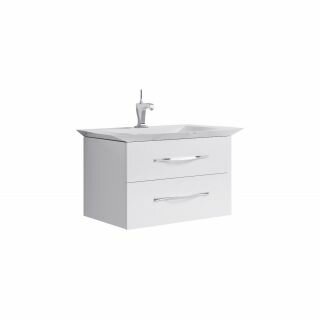 Подвесная тумба под раковину Aqwella Симфония W 90 Sim.01.07/2/W белая, с двумя выдвижными ящиками, для использования в ванных комнатах с повышенной влажностью.