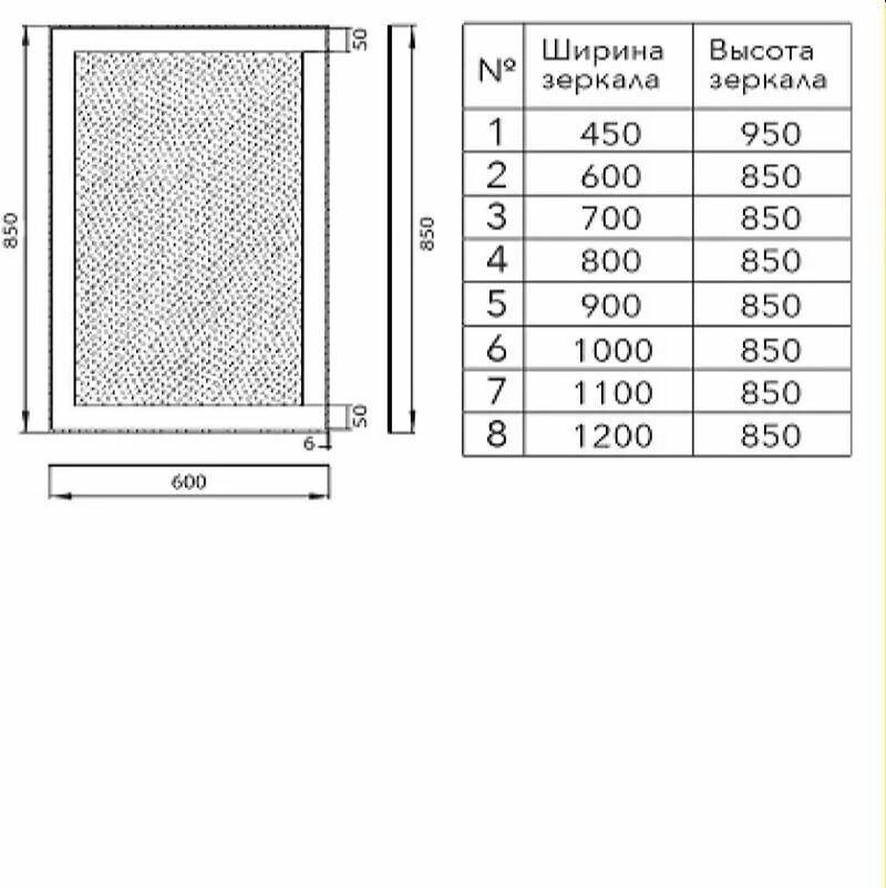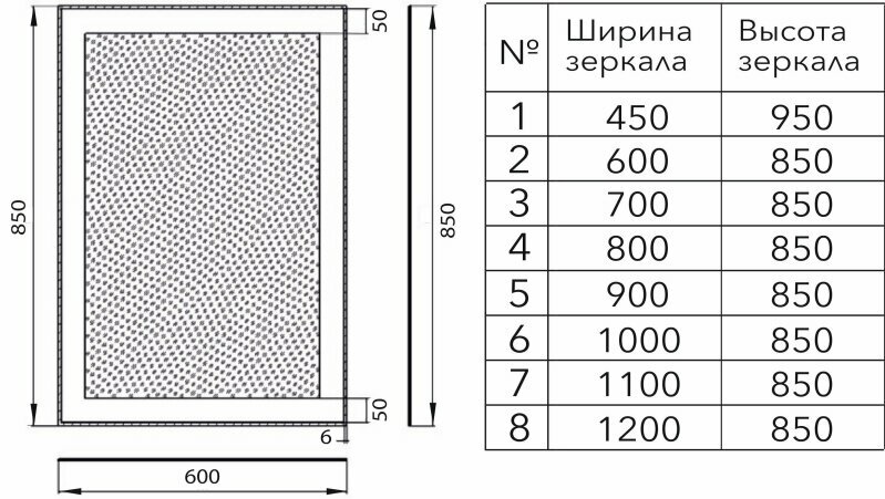 | Оснащение зеркала | С выключателем, с подсветкой |