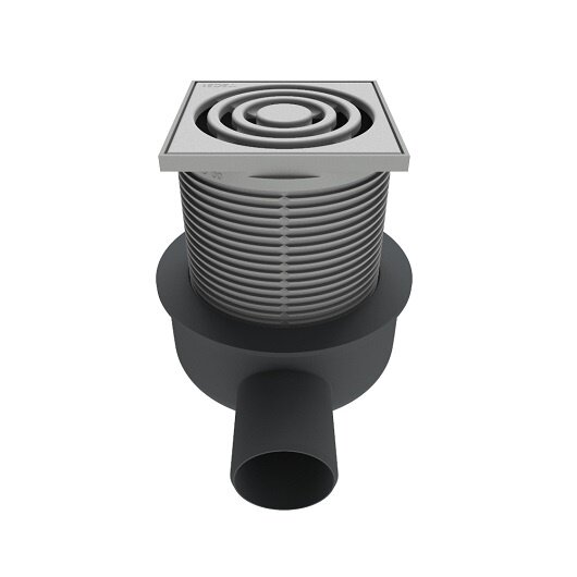 декоративная решетка из полированной нержавеющей стали 100 × 100 мм с монтажным элементом и уплотнительным резиновым кольцом;
