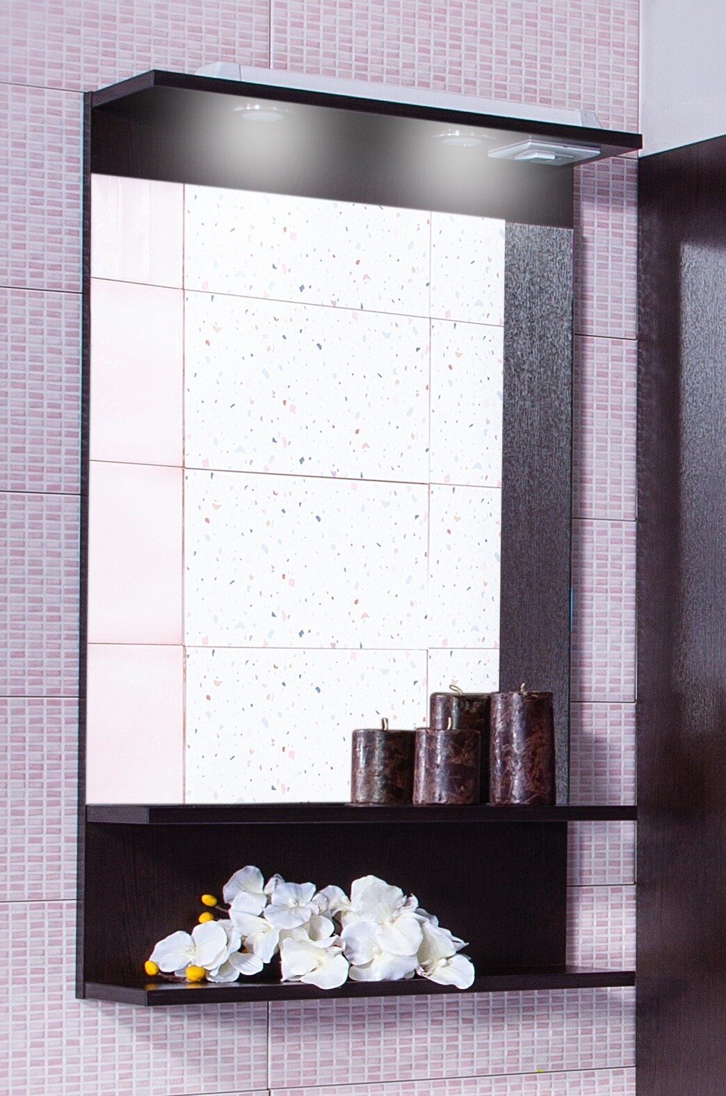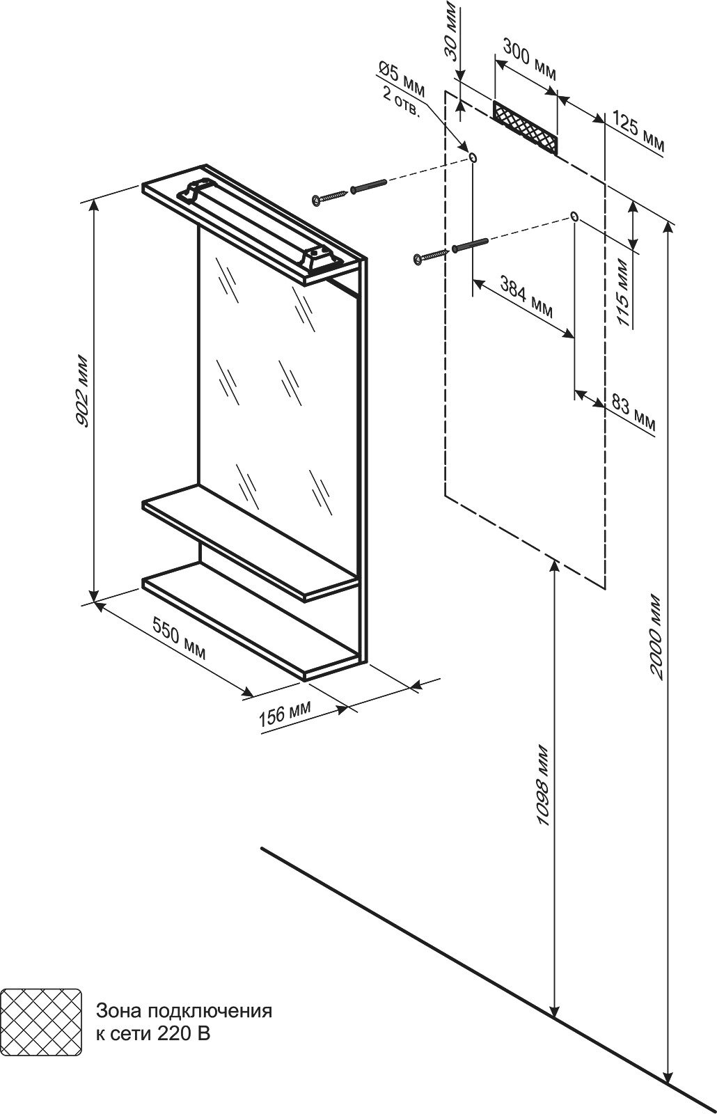 | Оснащение зеркала | С полкой, со светильниками, с выключателем, с розеткой |