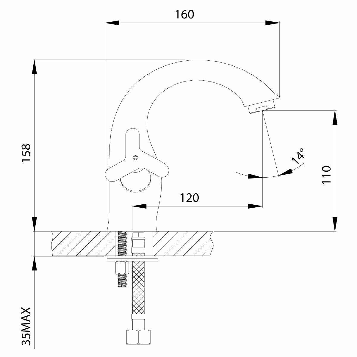 | Высота смесителя | 158 мм |