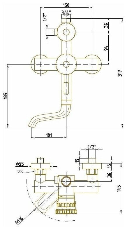 | Дополнительные функции | излив для наполнения ванны, ручной душ |