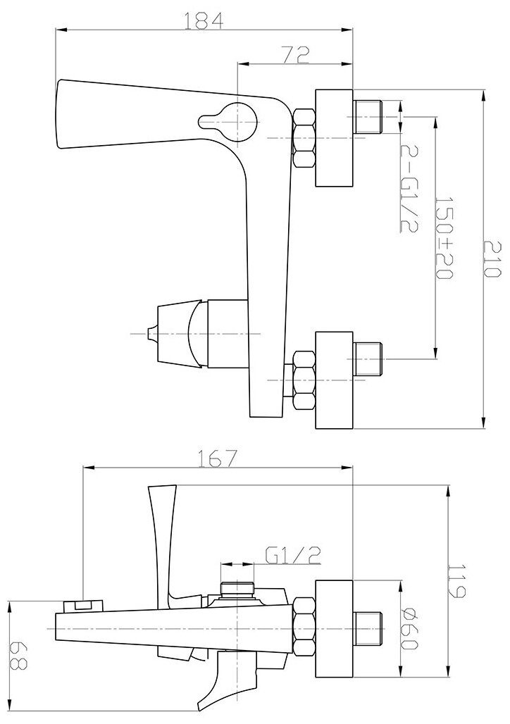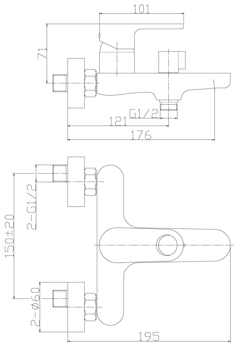 Смеситель устанавливается на стену. Управлять процессом включения и смешивания воды можно с помощью одной ручки с керамическим картриджем.
