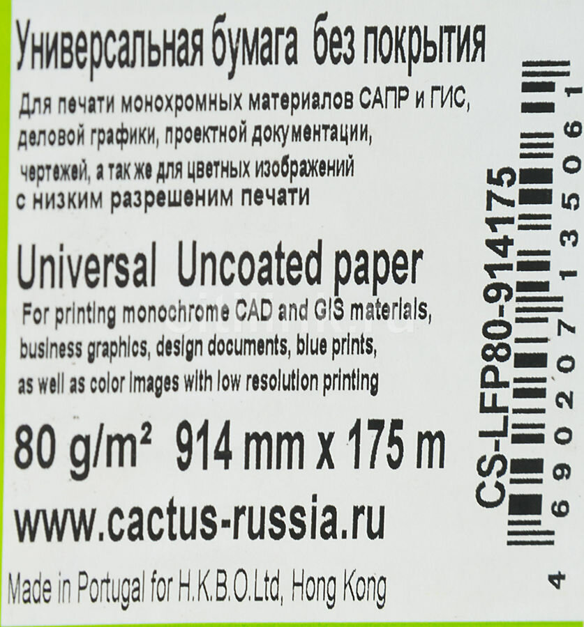 Бумага Cactus LFP80 914175 WH У/БУМ 175м РУЛ 80г