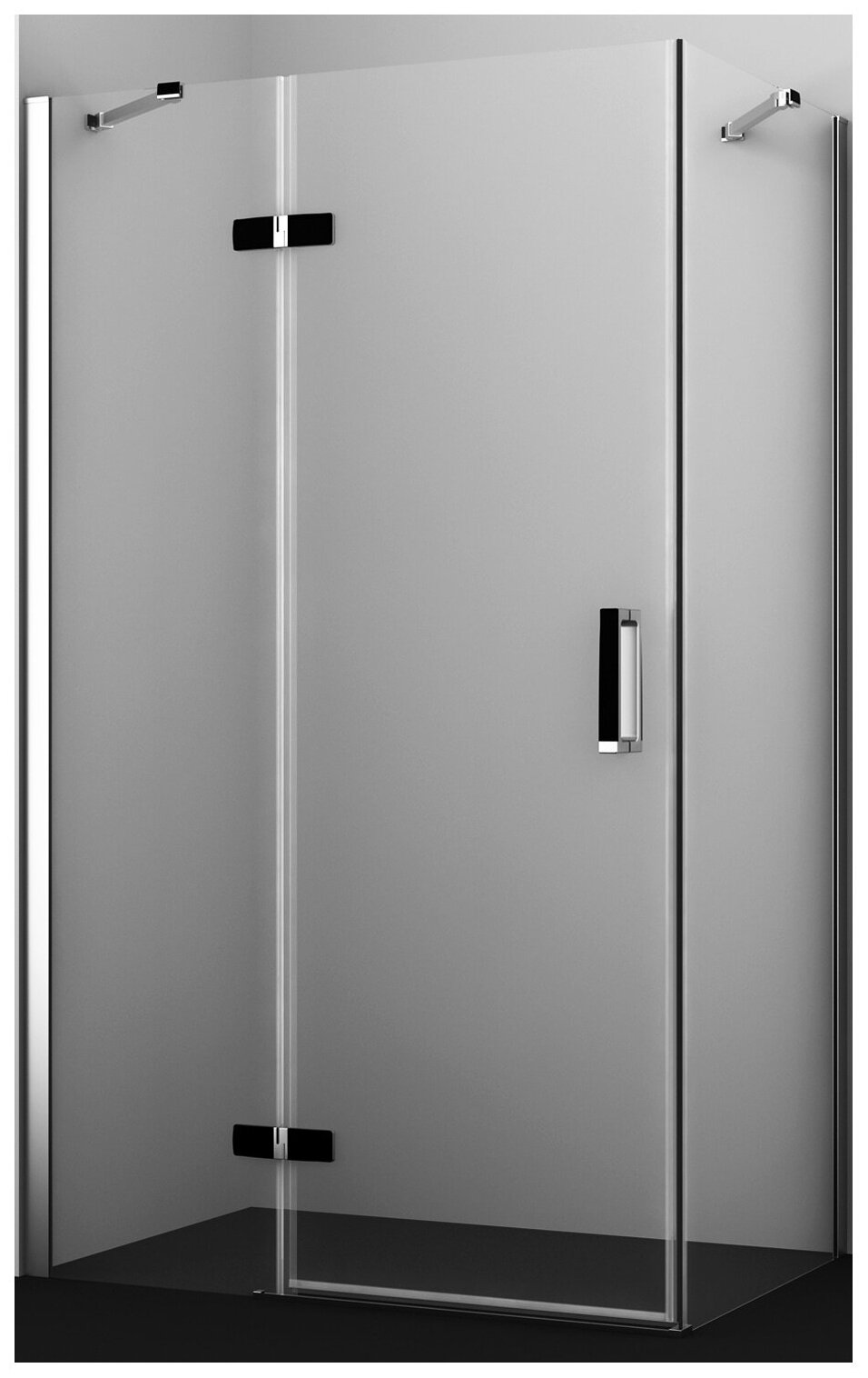 Aller 10H10L (душ.угол. 1200*1000*2000), распашная дверь на петлях. Механизм: петли из латуни, с обратной стороны - вровень с поверхностью. Закаленное прозрачное стекло 8 мм с покрытием EasyClean, Eco-shield (Германия). Регулирующий профиль до 20 мм. Магнитный силиконовый уплотнитель дверей. Металлическая ручка. Левая ориентация двери. ABS-накладки на петли и ручки (хром), возможность замены.