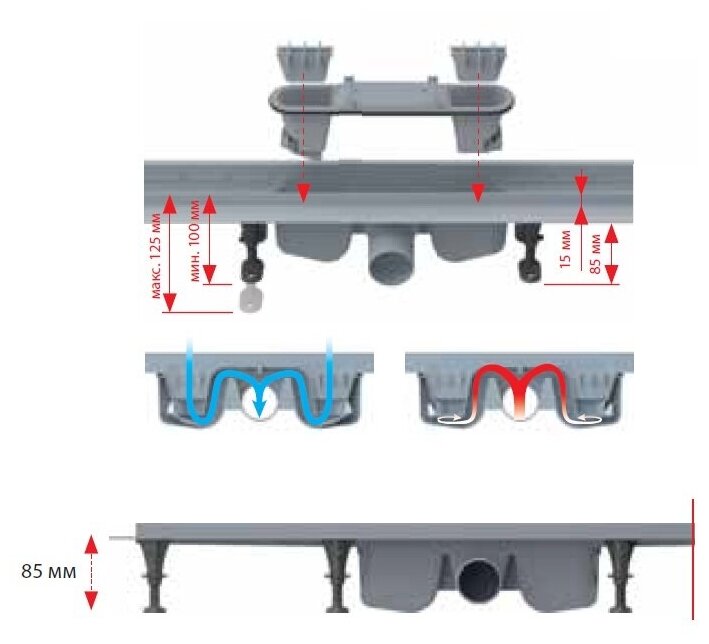 | Дополнительная информация | желоб с порогами для перфорированной решетки или решетки под кладку плитки, решетка приобретается отдельно |