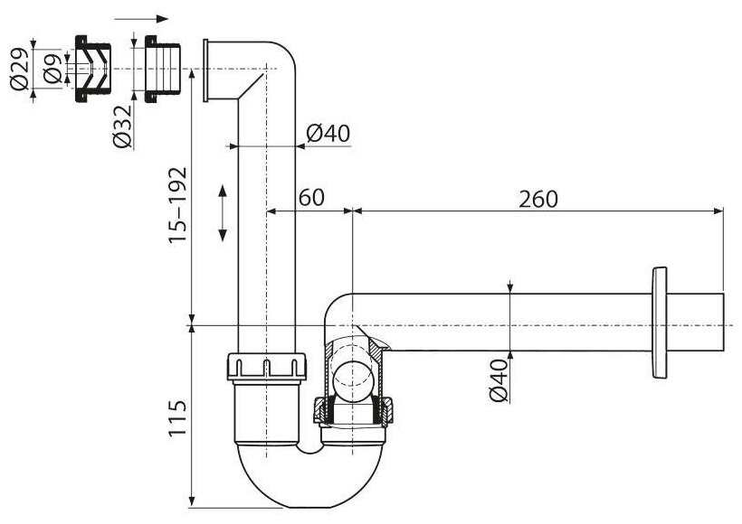 Сифон для сбора конденсата Alcaplast AKS2 с шариком. Используется в системах, где необходимо отвести конденсат в систему канализации, а также предотвращает появление неприятного запаха из системы канализации.