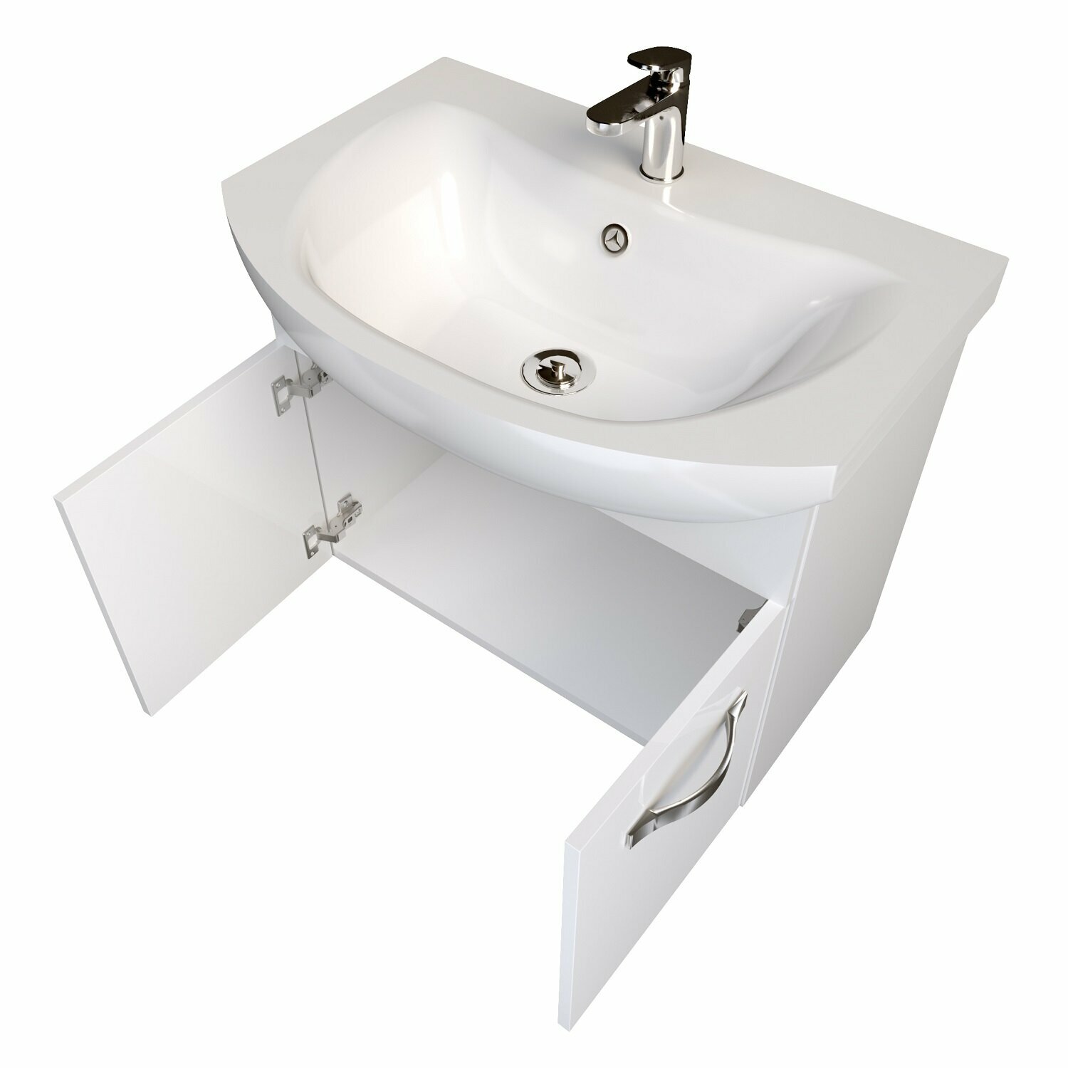 Панели тумб созданы из прочного МДФ с влагостойким покрытием Aquastop. Дополнительно защищены пленкой премиум класса из ПВХ, имеющую глянцево-белый цвет.