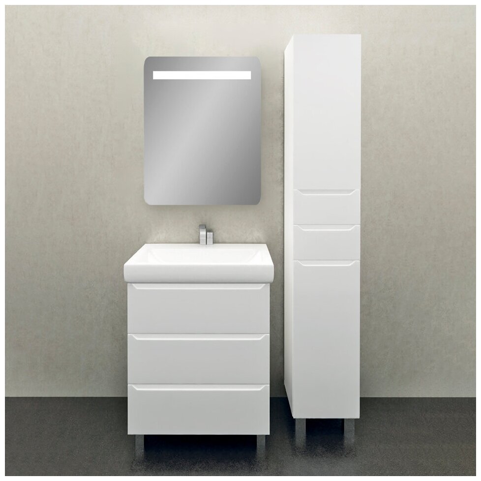 Тумба под раковину 1MarKa Кода 60Н (У57594) - компактный и практичный вариант для удобного размещения туалетных принадлежностей и полотенец. Три выдвижных ящика очень вместительны.