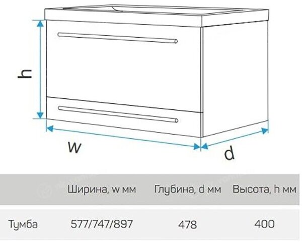 Панели тумб созданы из прочного МДФ с влагостойким покрытием Aquastop. Дополнительно защищены пленкой премиум класса из ПВХ, белый цвет.