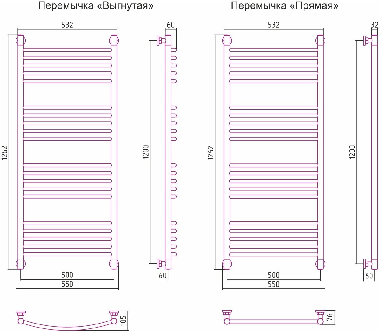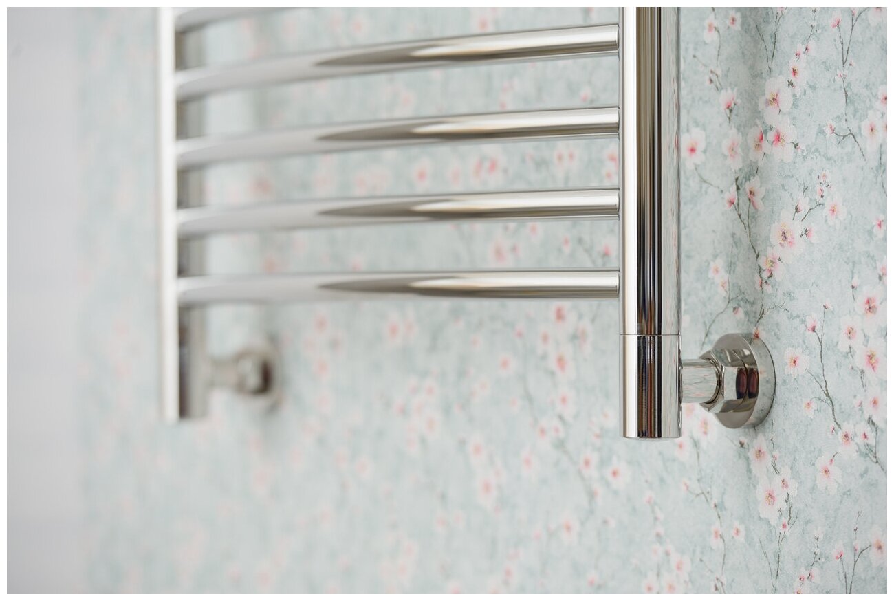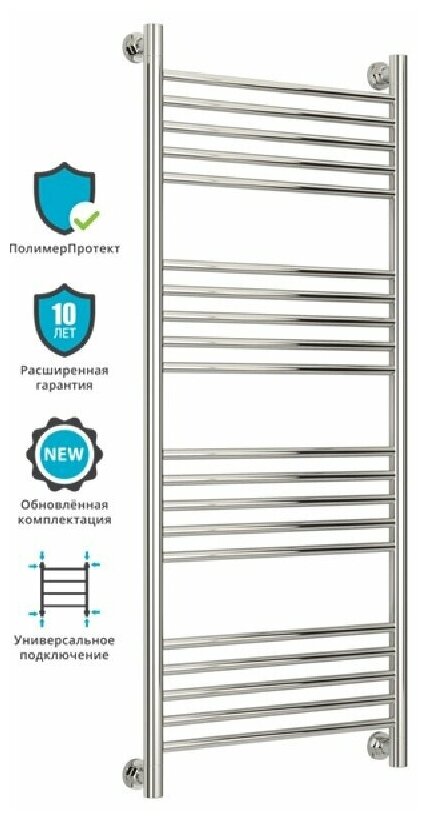 Группировка перекладин 5-5-5-5. Все элементы полотенцесушителя выполнены из нержавеющей стали. Выгнутый радиатор с применением технологии покрытия "ПолимерПротект".