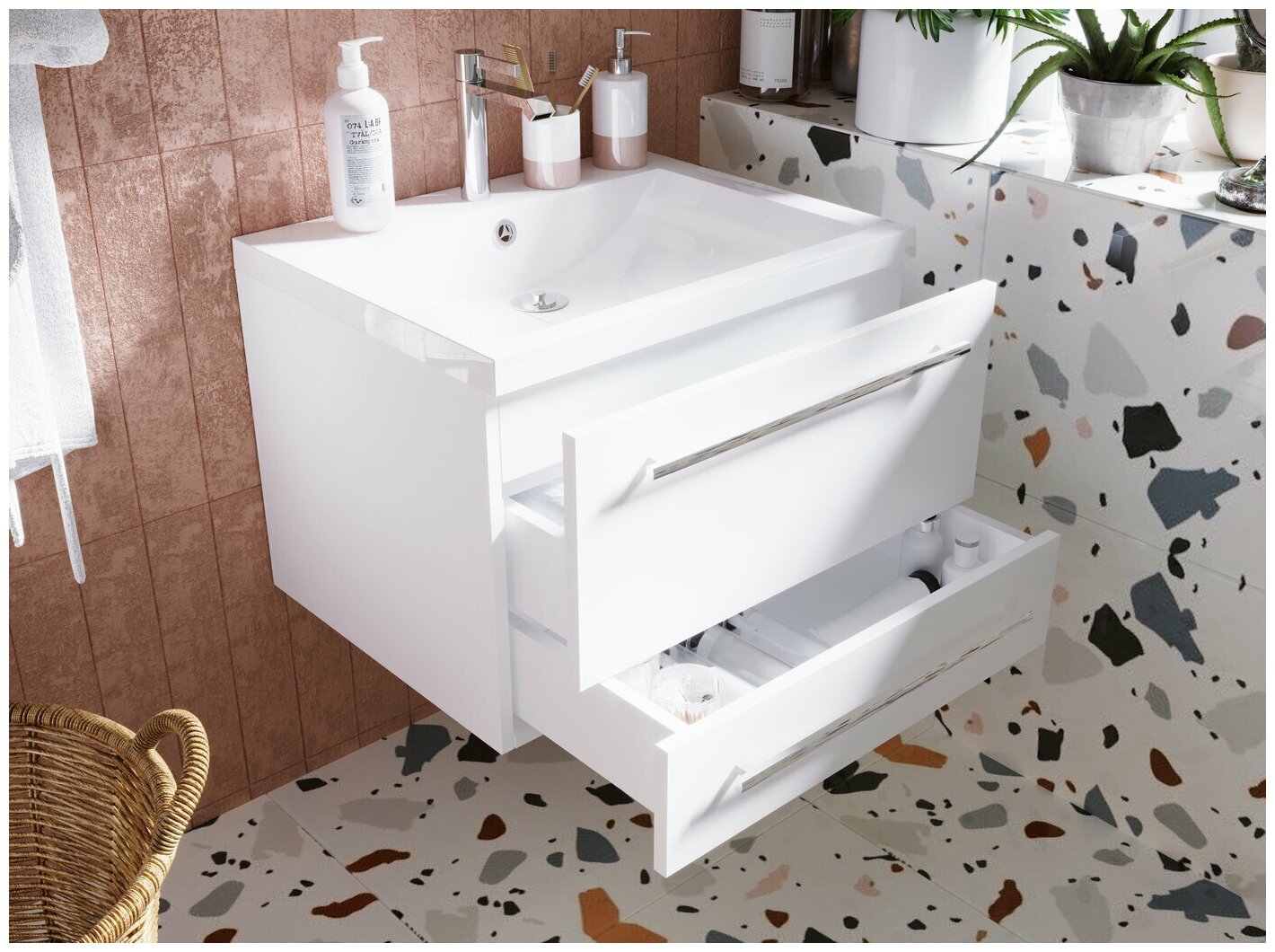 Тумба Соната 58П 1 ящик. Белый глянец. Цвет мебели: Белый. Крепления к стене идут в комплекте. Корпус МДФ (Egger), покрытый плёнкой ПВХ. Фасад МДФ (Egger), покрытый плёнкой ПВХ. Фурнитура Hettich. Умывальник Анита 580 идет отдельно.