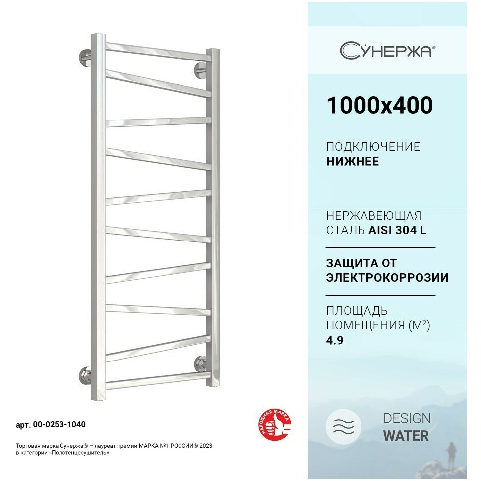 Водяной полотенцесушитель Сунержа Сирокко 1000х400 00-0253-1040, цвет хром - органично впишется в современный интерьер и порадует Вас великолепным современным дизайном и продуманной функциональностью.