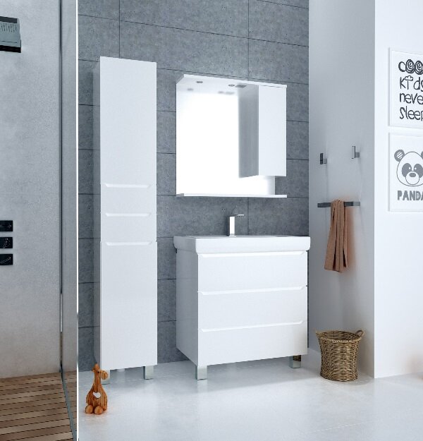 Зеркальный шкаф 1MarKa Кода 80 Лайт с подсветкой Белый глянец
