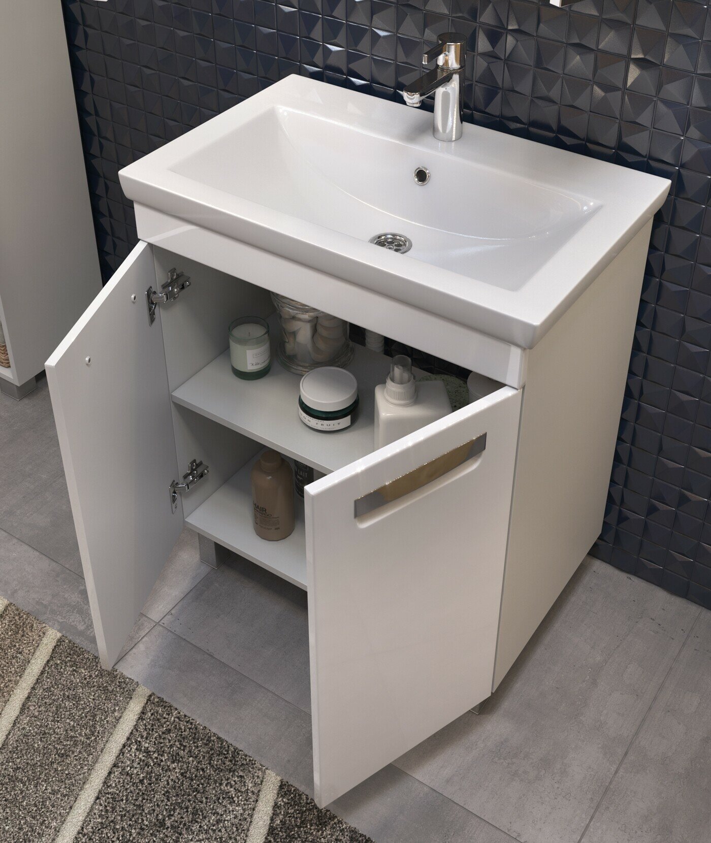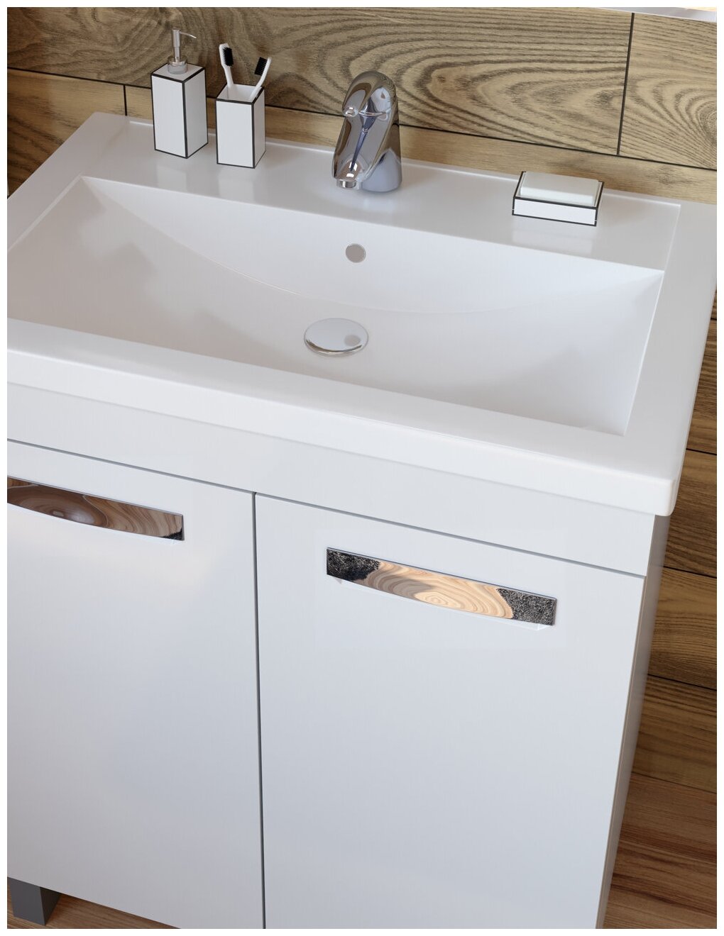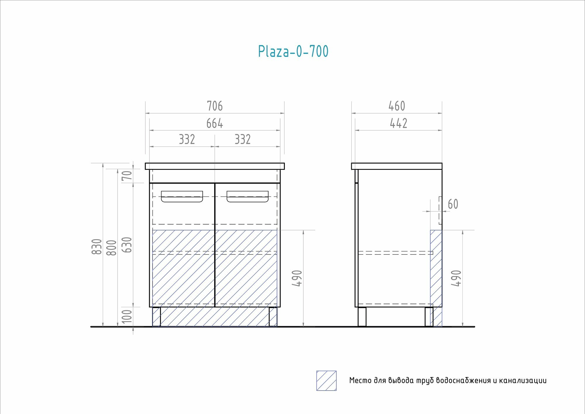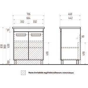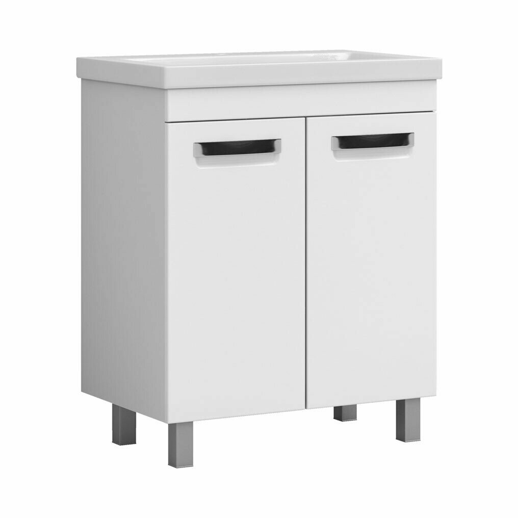 Тумба под раковину Vigo Plaza-0 70 2 дверцы; 1 полка ЛДСП; ручка врезная металлическая хромированная, опоры квадратные регулируемые.