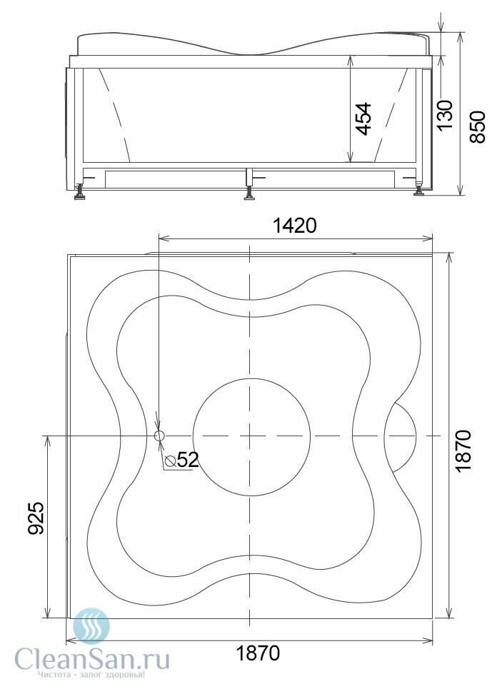 Материал: 100% акрил. Материал отличается прочностью и имеет гладкую поверхность без пор, что препятствует размножению бактерий и облегчает уход за ванной.