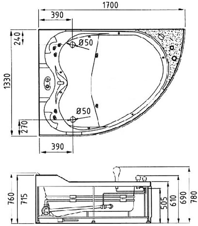 Материал: 100% акрил. Материал отличается прочностью и имеет гладкую поверхность без пор, что препятствует размножению бактерий и облегчает уход за ванной.