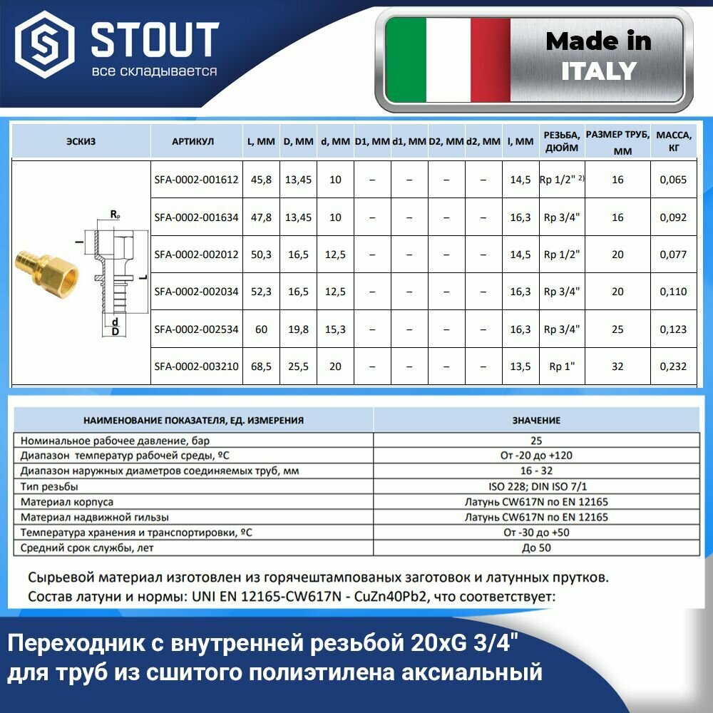Переходник Stout SFA-0002-002034 для труб из сшитого полиэтилена
