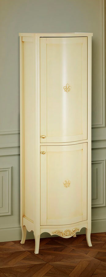 Шкаф-пенал Migliore Bella Лилии 49 R 25934 на изящно изогнутых ножках, с двумя распашными дверцами, с филенчатой поверхностью, с узором и лилиями. Уникальный дизайнерский шкаф-пенал от итальянской компании Migliore отличается изысканностью и надёжностью, а простота ухода позволит Вам получать удовольствие долгие годы. Предназначен для использования в ванных комнатах с повышенной влажностью.