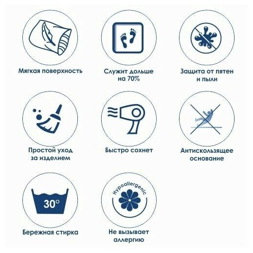 Антискользящее основание (резина). Машинная стирка 30 градусов, быстро сохнет. Мягкая поверхность, мгновенное поглащение влаги.