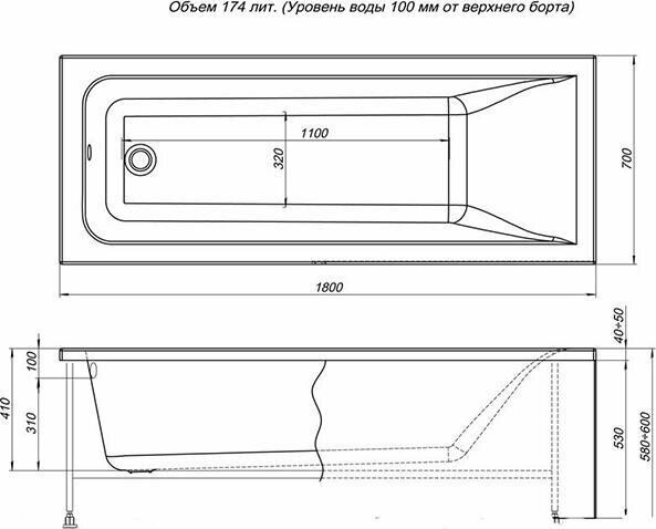 Акриловая ванна Aquanet Bright 180x70 создана с учетом растущего спроса на ванны простой прямоугольной формы в популярных размерах. Это модель с прямыми бортами и пологой спинкой, где соблюден идеальный угол для комфортного нахождения в ванне. Спинка плавно перетекает в бортик, поэтому релакс гарантирован даже без использования подголовника. Все линии ванны подчинены строгим законам эргономики. В современных условиях ширина ванны 70 см при длине 180 см - это наиболее востребованные габариты, так как прекрасно вписываются в стандартную планировку современных ванных комнат. Чаша в этой ванне устроена таким образом, что для обозначенных размеров в ней достигнут максимально возможный внутренний объем, а именно 174 литра, и это при комфортной глубине в 410 мм от слива ванны до борта.