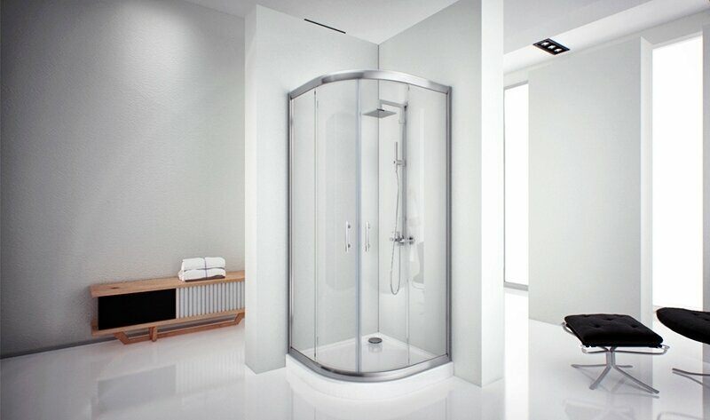 Такой стеклянный душевой уголок великолепно заменяет собой душевую кабину, но, в отличие от нее, дает больше возможностей рационально использовать площадь ванной комнаты по причине отсутствия задних стенок. Душевой уголок можно наполнить подходящим оборудованием – смесителем с душевой лейкой, душевым гарнитуром или даже полнофункциональной душевой панелью с гидромассажем, которые крепятся непосредственно на стену. Возле незадействованных боковых стенок можно расположить умывальник, корзину для белья, пенал, тумбу или другую мебель. Специальное ударопрочное стекло имеет антигрязевое покрытие, которое облегчает уборку душевой кабины и отталкивает конденсат.