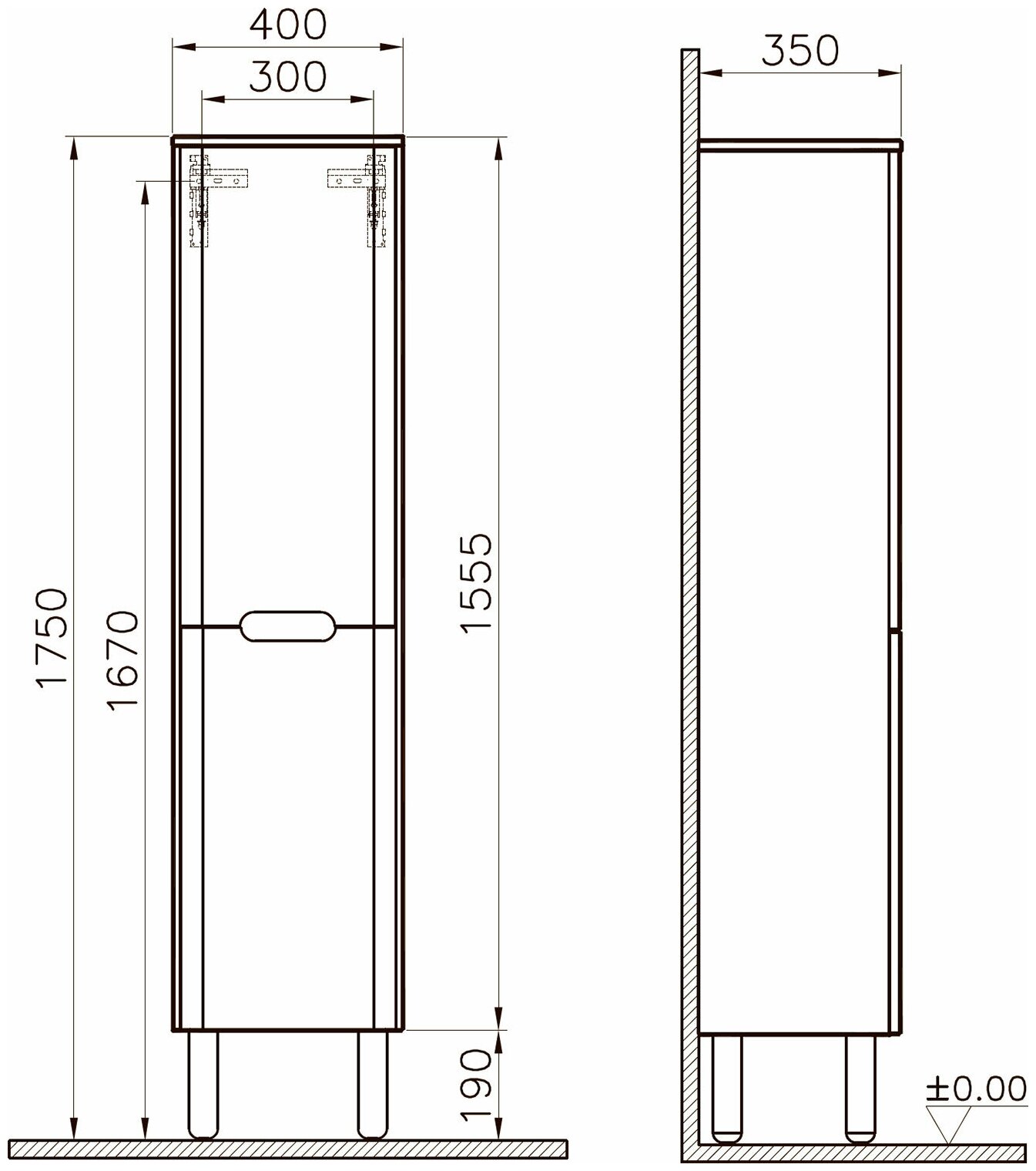 - Размеры (ШxВxГ): 40 x 175 x 35 см.