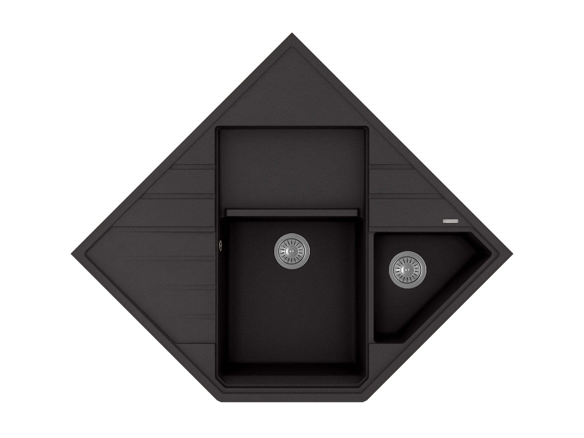 - Гидрофобное покрытие: капли воды не растекаются по поверхности мойки и не смачивают ее, благодаря чему легко стираются обычной губкой. Такой эффект самоочищающейся поверхности остается неизменным на протяжении всего срока службы изделия.