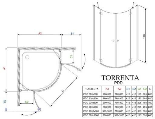Стеклянный асимметричный душевой уголок Radaway Torrenta PDD/E 90x80 31630-01-05N с элегантной хромированной фурнитурой, с двумя распашными дверьми, открывающимися наружу. Устанавливается на поддон или непосредственно на пол. Магнитный уплотнитель обеспечивает герметичность и устойчив к влаге и изменениям температуры. Прочное закаленное стекло безопасно в случаях повреждений. Водоотталкивающее защитное покрытие Easy Clean не позволяет каплям воды удерживаться на поверхности стекла и оставлять следы.