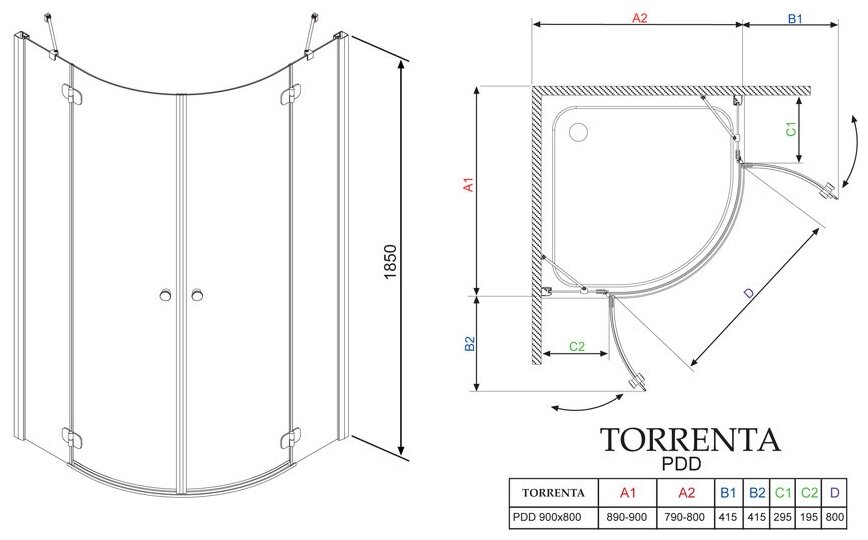 Модель: Torrenta PDD/E 90x80 профиль Хром стекло Графит