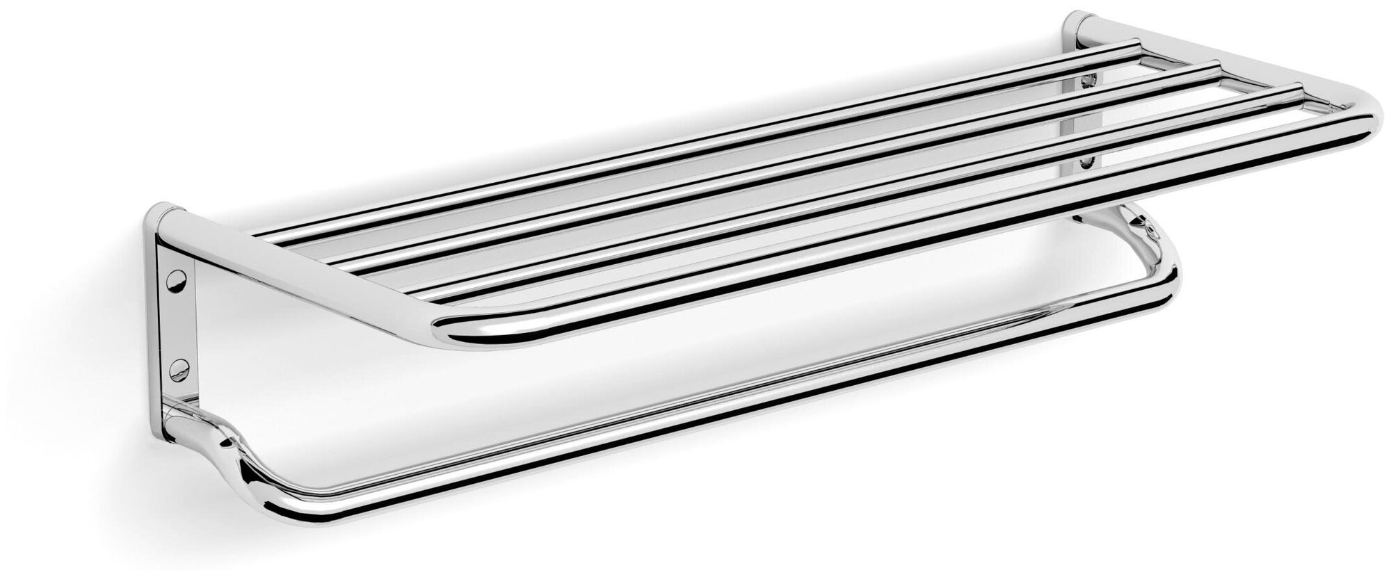 Полка для банных полотенец с полотенцедержателем. Материал - хромированная латунь.