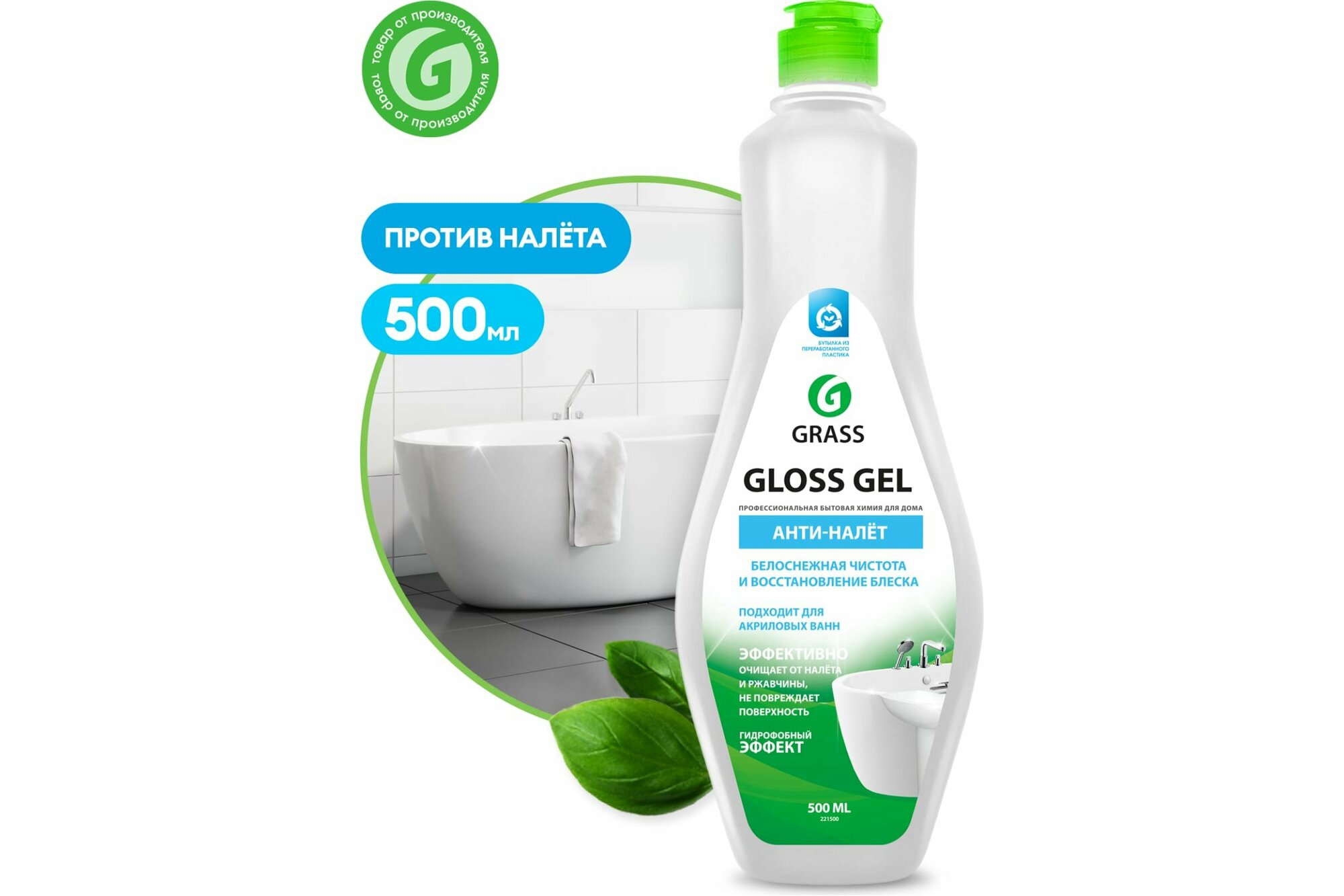 Чистящее средство Grass Gloss gel гель для акриловых ванн и кухни, 500 мл 221500 предназначено для ванной комнаты и кухни.Гель подходит для унитаза (туалета), для чистки ванной, душевой кабины, фаянсовых изделий, кафеля, сантехники, от известкового налета, подтеков ржавчины, мыльных разводов и солевых отложений.Средство для уборки рекомендовано для акриловых ванн.Эффективно и при этом бережно удаляет сложные и застарелые загрязнения.Придает поверхности чистоту и блеск, сохраняя эффект на несколько дней.На поверхностях, чувствительных к кислоте, держать не более 30 секунд.Эффективно удаляет сложные и застарелые загрязнения.Безопасно для акриловых ванн.