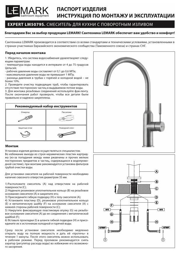 ОНЛАЙН ТРЕЙД.РУ — Смеситель для кухни LEMARK Expert LM5061S с подключением к питьевой воде