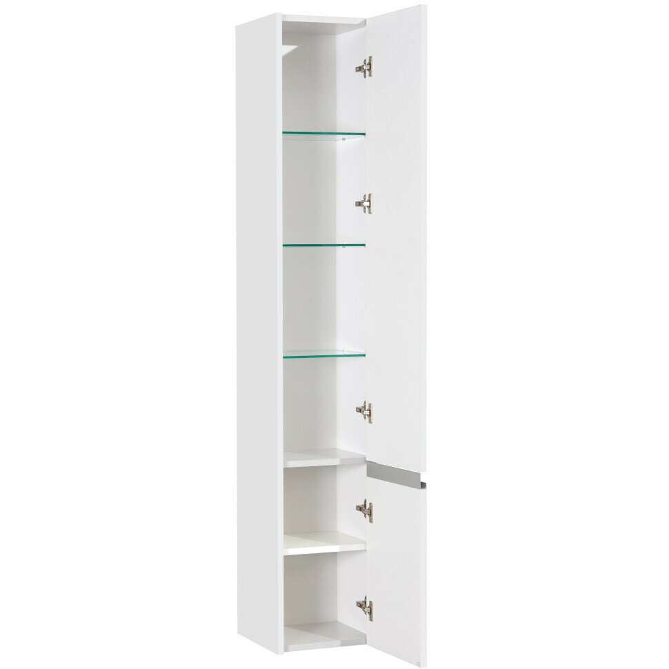 Шкаф-пенал - 1 шт. Ручка - 1 шт. Полка стеклянная - 3 шт. Полка - 1 шт. Инструкция - 1 шт. Оснащение: механизм доводчика, крепления