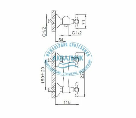Материал: силумин. Цвет: хром. Управление: двухвентильный. Керамическая кран-букса. Способ монтажа: на два отверстия, настенный. В комплекте поставки: смеситель, душевая лейка, держатель лейки, комплект отражателей, комплект эксцентриков. Страна производства: Россия. Гарантия: 3 года на корпус и покрытие, 1 год на комплектующие.