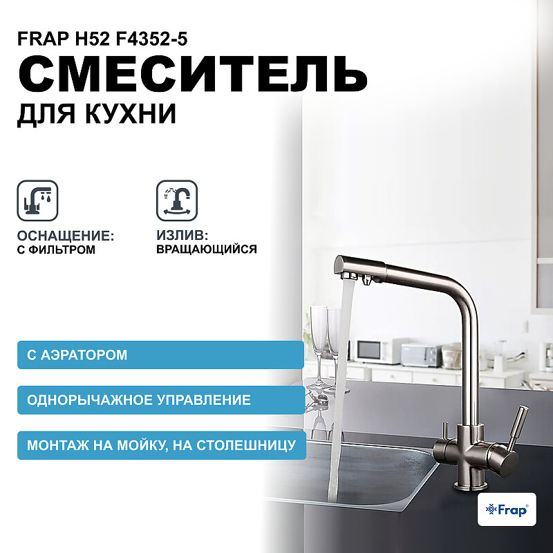 Сервис сравнения цен СкидкаГИД предлагает сравнить цены на товар «Смеситель для кухни Frap F4352 Г-образный излив Сатин»