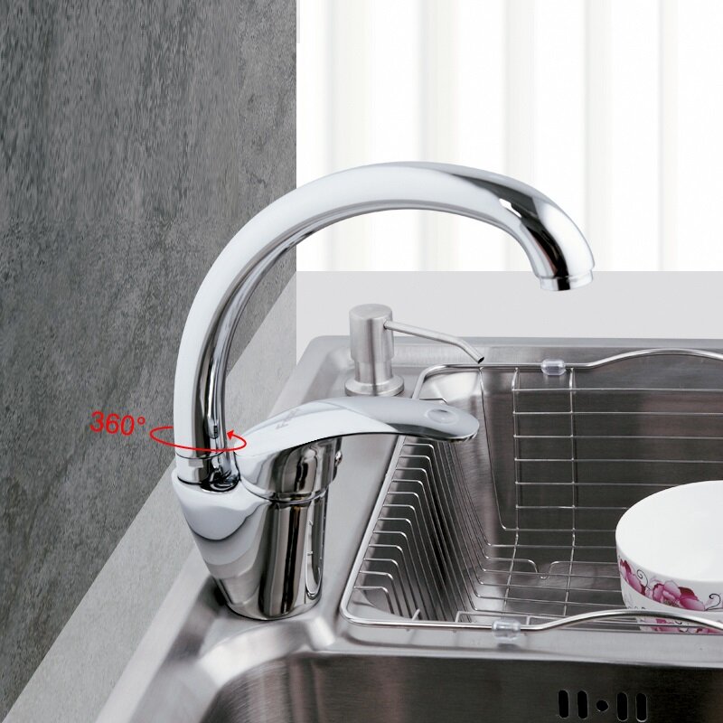 Смеситель для кухни Frap F4166, имеет один рычаг чтобы регулировать напор воды. Прибор характеризуется практичным управлением и надежностью во время работы, благодаря чему пользуется в наше время большой востребовательностью у заказчиков. Аэратор в смесителе позволит обеспечить равномерную подачу воды , а также ее смягчение. Сетка внутри устройства отфильтровывает нежелательные примеси. Конструкция приборов на шпильке подразумевает их монтаж в специальное отверстие с помощью креплений. Как правило используются две шпильки, зажимаемые винтами с обратной стороны умывальника или раковины. Современный смеситель – объединение классических конструкционных решений и вместе с тем необычного и смелого оформления. Подобная сантехника отлично подойдет для тех людей, кто хочет шагать в ногу с нашим временем. Материал данного прибора - латунь, это надежный материал, обеспечивающий прекрасное нанесение хромированного покрытия. В данном приборе излив способен вращаться, что увеличивает функциональность. Оснащен керамическим картриджем, который смешивает холодную и горячую воду. Также картридж уменьшает шум подачи воды. Картридж в диаметре 40 миллиметров. При монтаже модели достаточно, когда в умывальнике или раковине находится всего одно отверстие , отведенное под прибор. Как правило, такой подход гарантирует быстрый и легкий монтаж. В комплекте идет, инструкция по установке, гарантийный талон.