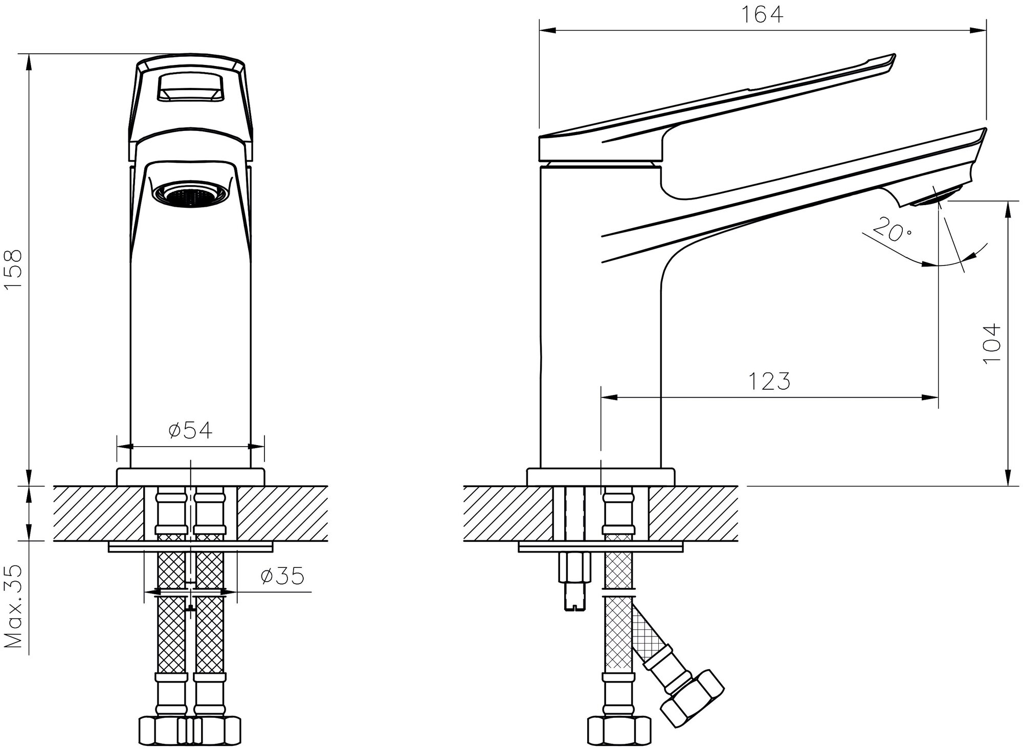 "Socotra ST1235-11 - Смеситель для умывальника, хром • Картридж D-35 (RSH102) с керамическими пластинами • Высота смесителя - 158 мм. • Излив литой, неповоротный, 123 мм. • Высота излива (до аэратора) - 104 мм. • Пластиковый аэратор с нержавеющим корпусом • Угол наклона аэратора - 20 гр. • Универсальная присоединительная группа (шпилька - 2шт). • Гибкая подводка с латунными гайками 35см. - 2 шт. • Металлическая ручка Доп. комплектующие в коробке • Аэратор • Фум – лента • Индивидуальный пакет"
