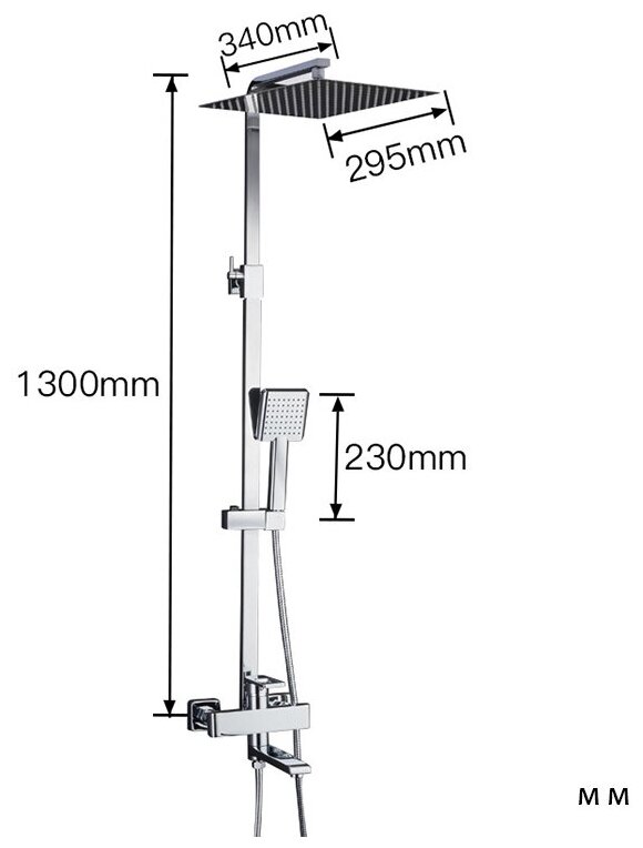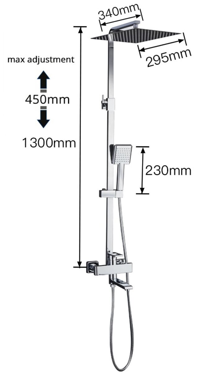 | В комплекте | верхний душ, держатель, штанга, смеситель, душевой шланг, лейка ручная, излив |