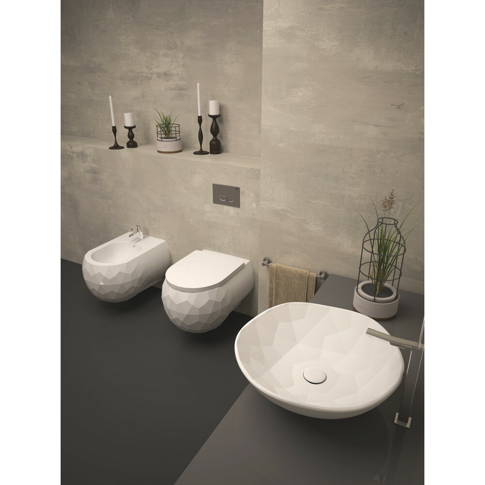 Подвесное биде Bien Pent PNBA05201VD1W3000 с гигиеническим покрытием, с отверстием для смесителя, с переливом, с системой скрытых креплений. Эстетическая и стильная коллекция Pent воссоздает пятиугольники и шестиугольники удивительно совершенными линиями. Гигиеническое покрытие поверхности Magiclean испытано и одобрено немецким Институтом гигиены и кафедрой генетики и биоинженерии Университета Yeditepe в Турции.