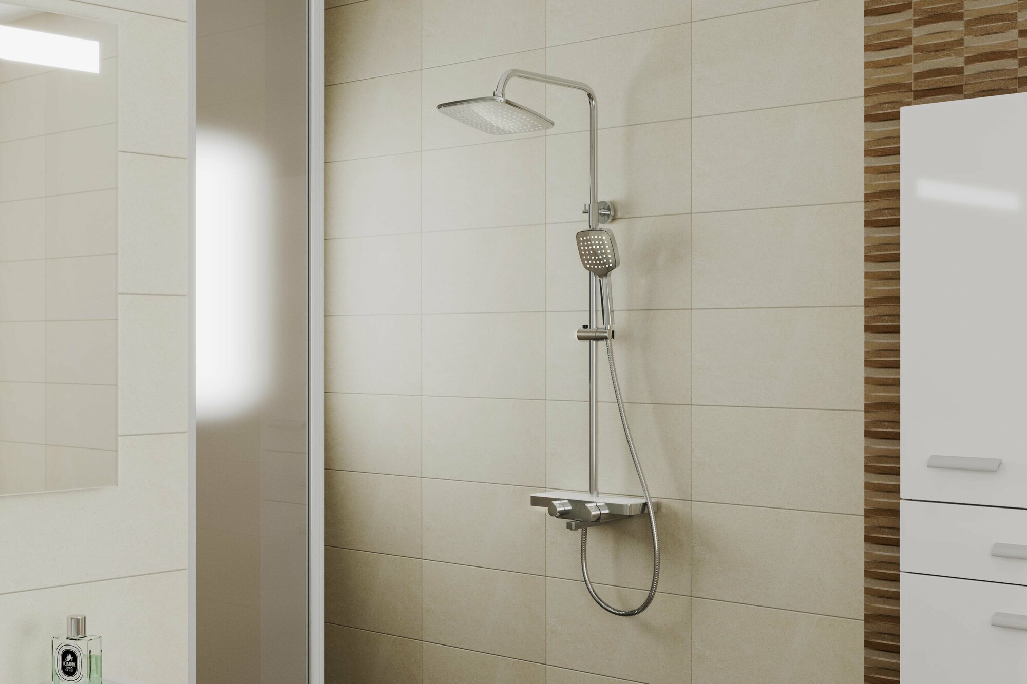 | Комплектация | смеситель, душевой шланг, душевая лейка, держатель для душевой лейки, верхний душ, штанга, инструкция |