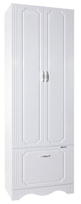 Шкаф-пенал Bellezza Кантри 60. Артикул: 4629909090019. Цвет: белый.Элегантный пенал станет отличным функциональным решением для Вашей ванной комнаты. Прекрасно дополнит интерьер и подарит комфорт и уют. - Изготовлен из влагостойких МДФ/ДСП с четырехслойным лаковым покрытием (Италия). Материалы устойчивы к повышенной влажности, перепадам температур, развитию грибков и микроорганизмов.- Две распашные дверцы с доводчиками для плавного и бесшумного закрывания.- Внутренние полочки.- Один большой нижний ящик с механизмом полного выдвижения.- Волнообразный фигурный цоколь (съемный).- Габариты (ШхВхГ): 60x190x35 см.- Монтаж: напольный. В комплекте поставки: шкаф-пенал.