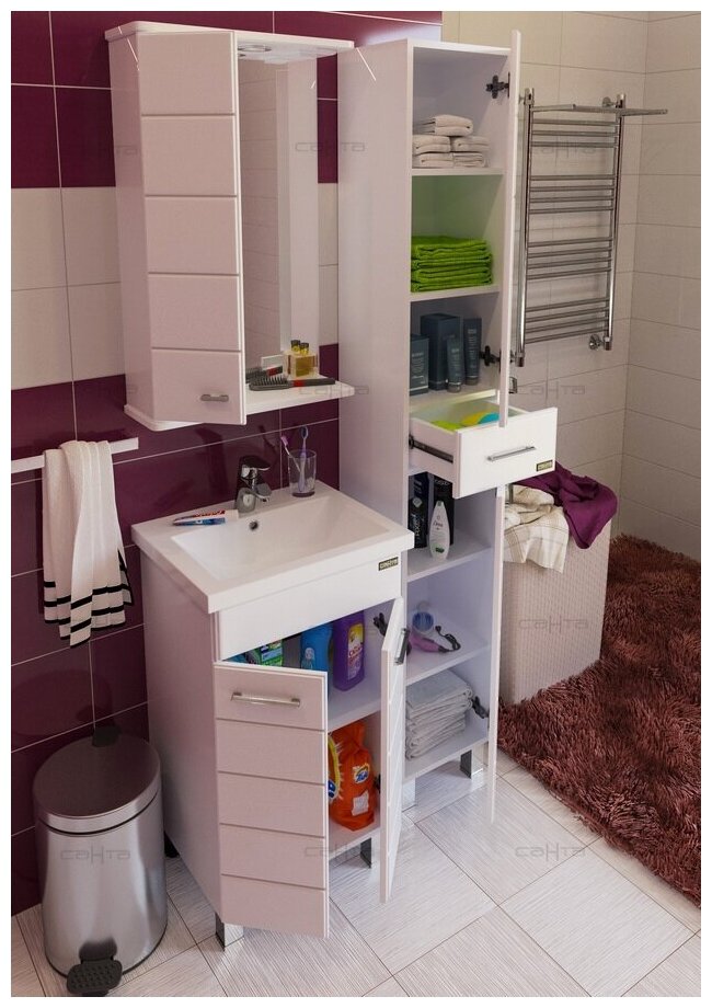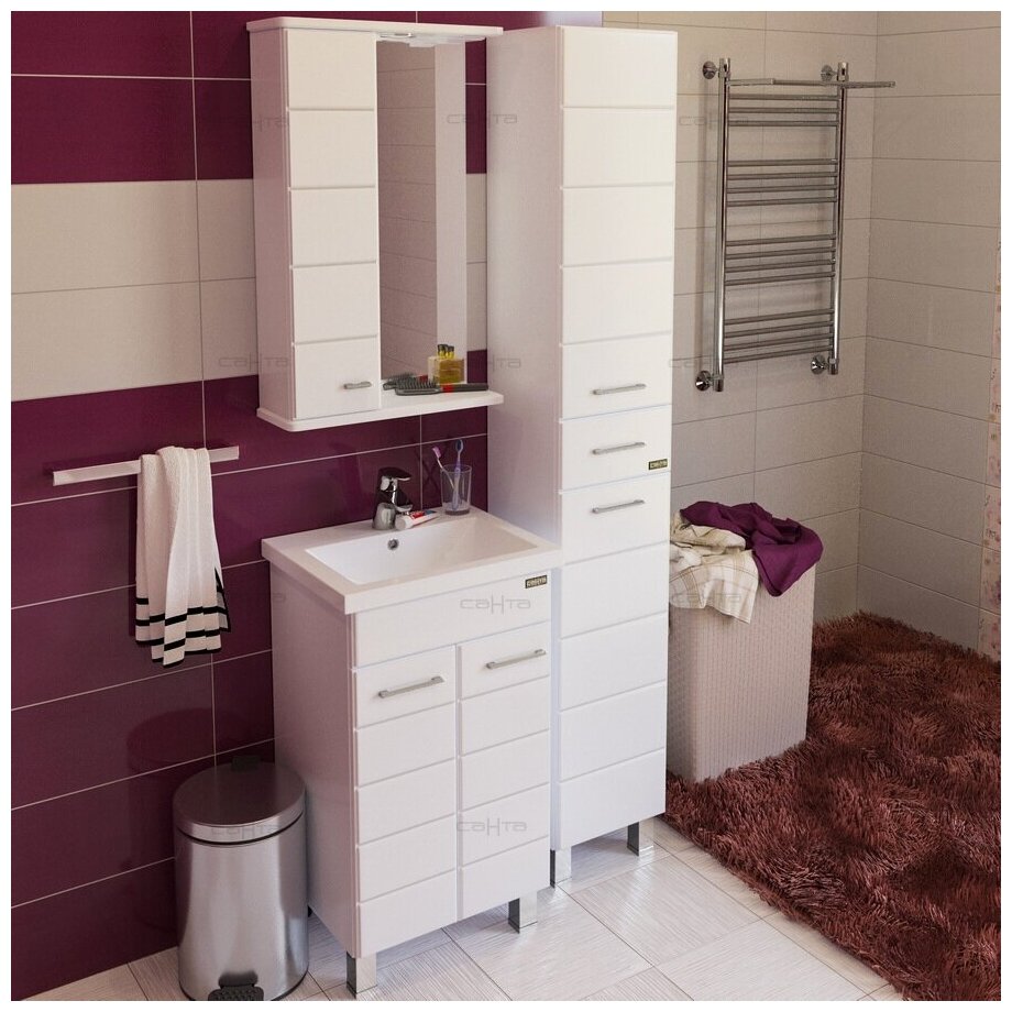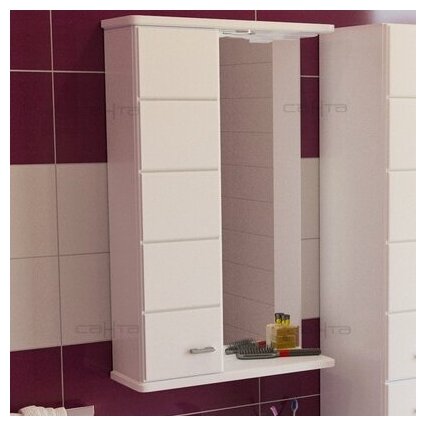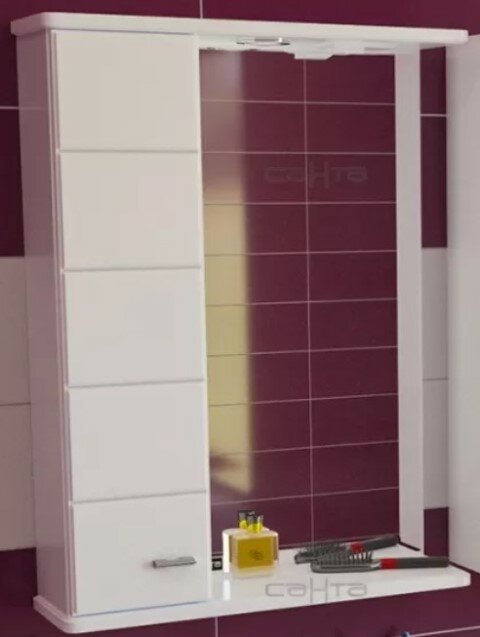 Зеркальный шкаф Санта Омега 50 левосторонний 107001 с подсветкой Белый.